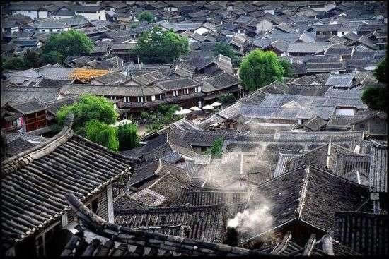 丽江古城即是以四方街发起来的,形成以四方街为中心,四周店铺客栈环绕,沿街逐层外延的稠密而又开放的格局,古老的集市就这样孕育了城市最初的形状,这与中国传统的四四方方的井字形街道是不是一样的。这里四周青山,坝内碧野,泉水萦回,形同碧玉大砚,故命名“大研古城”。